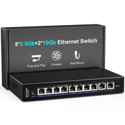 【2.5G PoE Switch】6 ports 2.5G PoE Switch with 4 x 2.5Gb PoE ports + 2 x 10G uplinks, 10G RJ45 can provide more rate and connect to different devices such as WiFi6 Router, NVR, 4K PoE Camera and so on.
